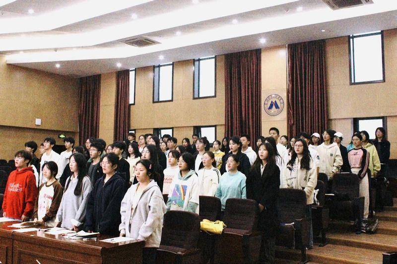 最后,全体成员奏唱中国共青团团歌,开班式正式结束。