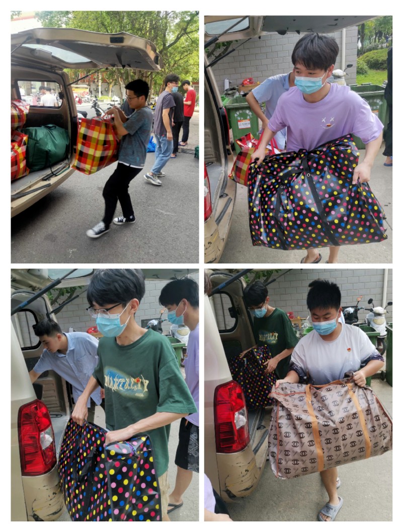 搬迁前期,学院领导精心筹备和组织,为学生提供编织袋、面包车等搬运工具。土木第一学生党支部闻令而动,在校的党员志愿者们在搬寝当天积极投身志愿活动,协助换寝同学进行行李搬运和新房间打扫。