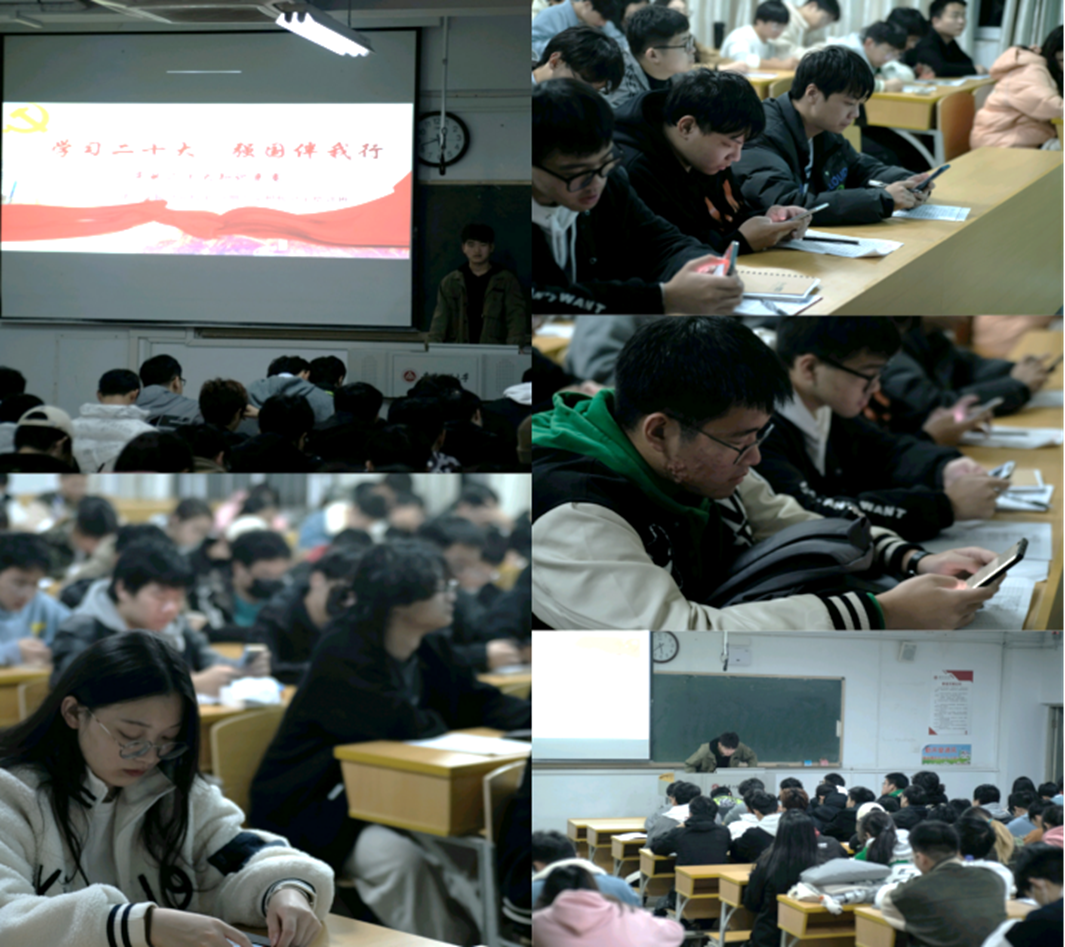 “全面建设社会主义现代化国家的首要任务是什么?”“中国共产党第二十次全国代表大会的主题是什么?”“中国式现代化的本质要求是什么?”……11月17日晚,4J107气氛热烈,一场以“学习二十大  强国伴我行”为主题的党的二十大知识竞赛正如火如茶进行,来自建筑工程学院分党校全体学员正在激烈地角逐。