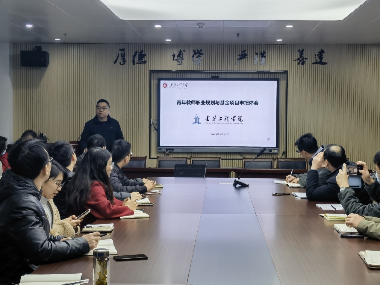 2月22日晚七时,建筑工程学院举办青年教师职业规划与国家基金申报报告会。作为学院“青年教师成长工程”的第一项活动,本次报告会以职业规划和国家基金项目申报为主题,由学院院长曾磊主讲,学院全体青年教师参加,报告会由学院副院长曹兵主持。