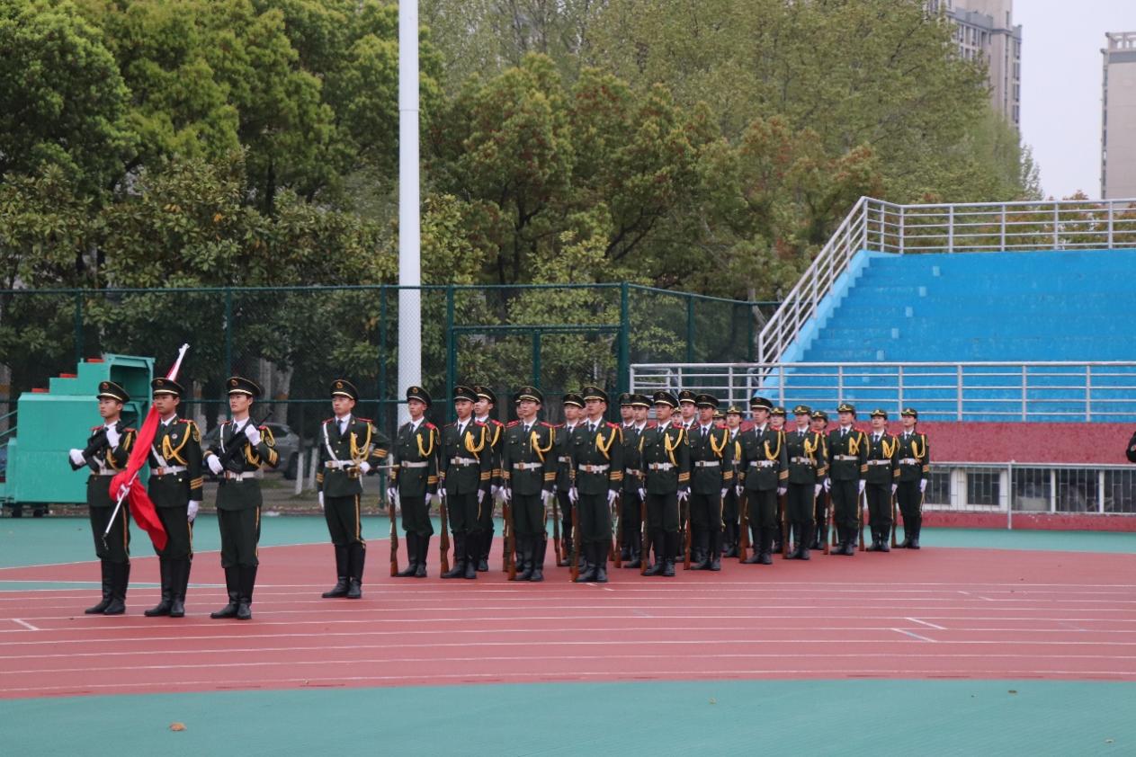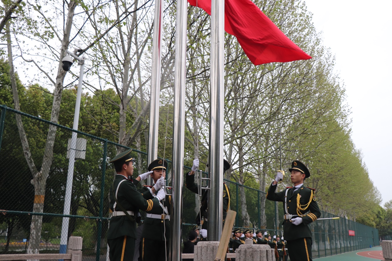 随着音乐响起,英姿飒爽的国旗护卫队迈着整齐的步伐,护送鲜艳的五星红旗入场,每一位师生深怀对祖国无限的热爱和崇敬向国旗行注目礼。伴随着雄壮有力的《义勇军进行曲》,五星红旗冉冉升起,迎风飘扬,犹如一团火焰,在空中迎风飘扬,熠熠生辉。