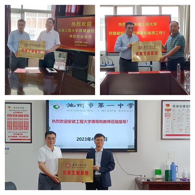 为提升学校美誉度,吸引优秀考生,提高生源质量,促进高校与高中的交流合作,强化“高校-中学”人才培养一体化,4月20-21日,校党委常委、副校长郑健带领建筑工程学院、材料科学与工程学院负责人赴池州市第一中学、池州市第六中学和池州市第八中学开展招生宣传、优质生源基地建设等工作。