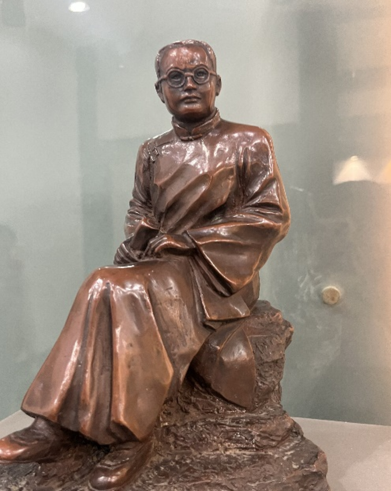 进入纪念馆,首先映入眼帘的是陶行知先生雕像。雕像栩栩如生地展示了他那温和而坚定的面容,给人一种亲切感和崇敬之情。郭沫若 曾赞道:“二千年前孔仲尼,二千年后陶行知” ,展现了这位伟大的人民教育家的高大形象。雕像后面是毛主席题写的“伟大的人民教育家”八个金色大字,潇洒飘逸,刚劲有力,无不昭示着陶行知先生的文人风骨与教书育人的信念。接下来,参观者可以通过各种图片、文字和实物展品来了解陶行知先生的一生和他对教育事业的贡献。展览详细地介绍了他的教育理念、教育实践以及与其他教育家的合作交流等内容,使人们更加深入地了解陶行知先生的思想和成就。