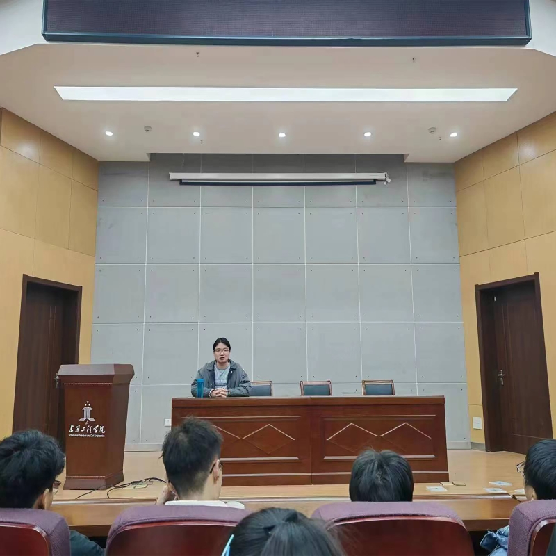 2023年11月28日晚,建筑工程学院在C座三楼报告厅举办就业创业大讲堂暨优秀校友报告会。优秀校友慈龙玏(建筑设计研究所科研助理)应邀出席。院团委书记兼学工秘书苏伟刚主持报告会,辅导员黄贤君以及建筑学专业全体新生聆听校友报告。