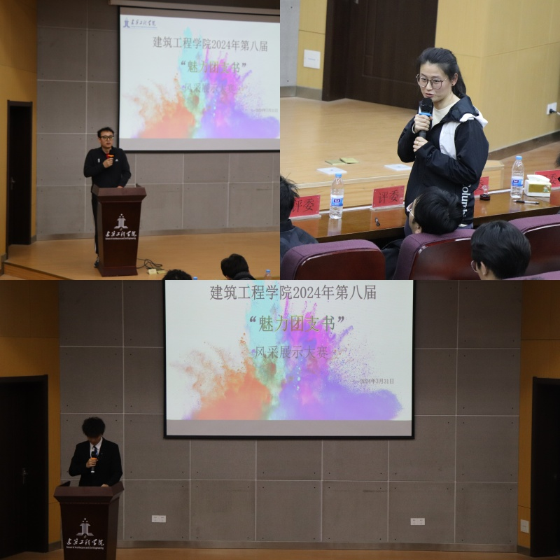 为进一步推进基层团组织规范化建设,提升新时代共青团工作的“三力一度”,4月1日下午,建筑工程学院在C座3楼报告厅举办团支书述职报告会暨“魅力团支书”评选答辩活动,校团委副书记邱意敏、人文学院辅导员范夏勋、院团委负责人、辅导员、全体团支部书记受邀出席活动。