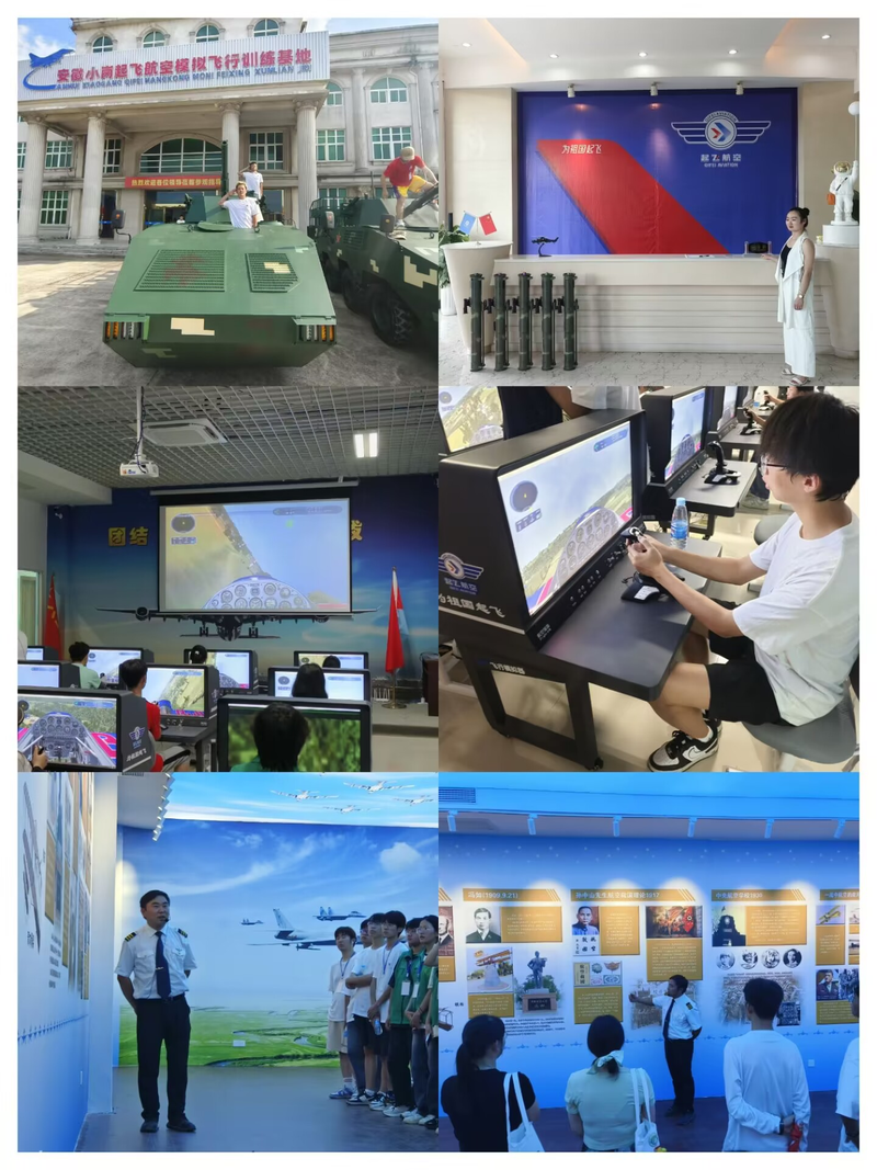 蓝天筑梦,翱翔小岗村。午后阳光斑驳,小岗村的天空显得格外湛蓝。队员们首先抵达了这片土地上的新奇迹——小岗村飞行训练基地。在这里,他们仿佛踏入了一个科技与梦想交织的殿堂。随着发动机的轰鸣,一架轻型飞机腾空而起,划破了乡村的宁静,也点燃了队员们心中的飞行梦。在专业人员的指导下,队员们亲身体验了模拟飞行的乐趣,那一刻,他们仿佛化身为翱翔天际的雄鹰,俯瞰着这片充满希望的土地,心中涌动着“会当凌绝顶,一览众山小”的豪情壮志。