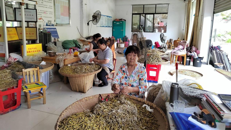 团队成员们向工人了解到,石斛采摘后主要经晾晒,翻炒,固形,剪切这几道主要工艺而成,每道工序都不可或缺。工人们有条不紊的进行着,熟练掌握每一道工序技术。通过此次企业调研,队员们深刻理解了“靠山吃山,靠水吃水”这句话。霍山县太阳村的村民们发展地方特色石斛产业,找到了适合于自身的发展方向,解决了太阳村村民留村就业问题,实现了产业发展与农民增收的双赢,这也是他们走向致富路的关键。
