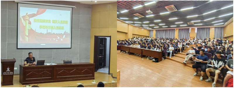 学院党委书记李烨以“坚定理想信念,端正入党动机,争取早日加入党组织”为题,以大学生发展党员标准、党员发展基本程序和如何端正入党动机等为主要内容,结合党的二十届三中全会精神和全国教育大会精神,强调青年学子应点燃理想信念的“火种”,深耕厚植爱党、爱国、爱社会主义情感,积极主动向党组织靠拢。李烨在报告中结合乡村振兴和“一带一路”建设,为新生分析了土建学科现状和前景,勉励大家珍惜大学时光,努力学习专业知识,积极投身社会实践,不断提升自己的综合素质和能力水平,将个人理想追求融入到党和人民的事业之中。