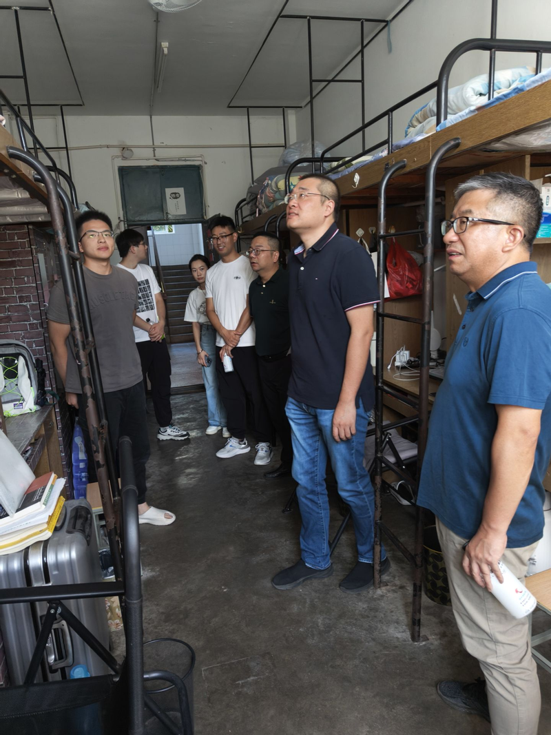 绷紧“安全弦”, 把好“节前关”。在喜迎75周年华诞之际,为进一步加强学生日常管理,强化学生公寓安全意识,9月29日下午,建筑工程学院党政负责人李烨、曾磊、张礼波、曹兵,学院团委负责人、全体辅导员等一行9人走访学院研究生和本科生宿舍,并进行安全大检查。