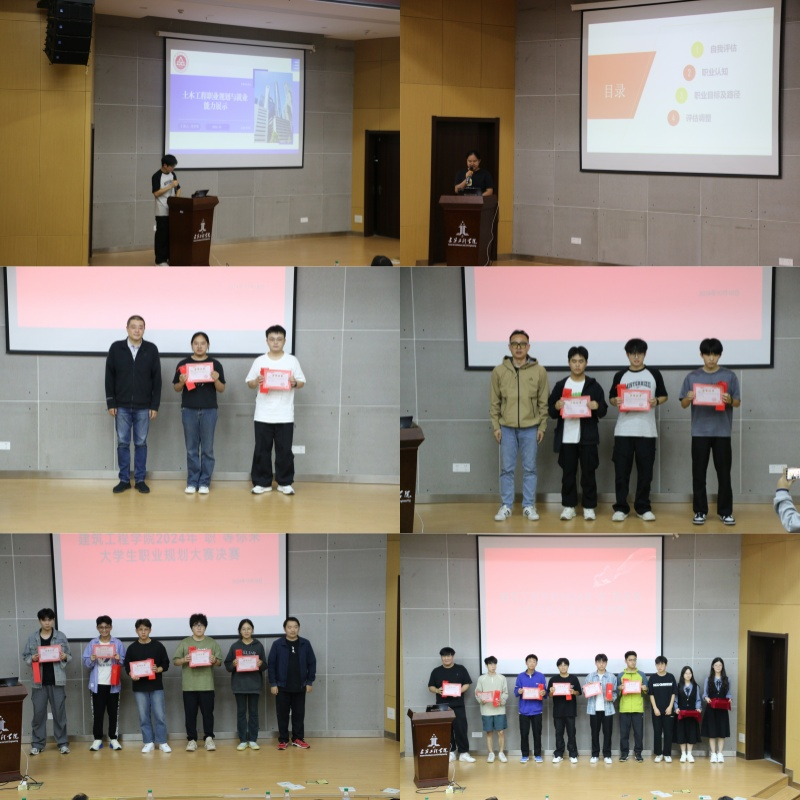 2024年10月21日,建筑工程学院大学生职业规划大赛决赛在C座3楼报告厅成功举办,院团委负责人、2024级新生辅导员、学生组织负责人受邀担任评委,2024级全体同学观看了比赛,院党委副书记张礼波受邀出席活动。