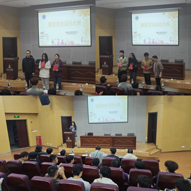 为进一步落实学校“三抓”理念和“三全六专”育人工作精神,创新“一站式”学生社区综合管理模式,11月3日晚,建筑工程学院在C座3楼报告厅举办第十三届寝室文化设计大赛,院团委负责人、2024级新生辅导员受邀出席比赛。