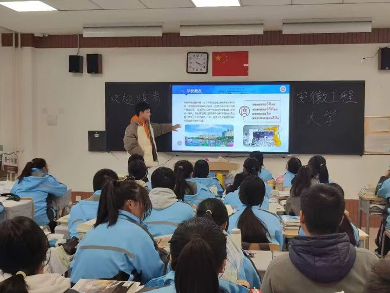活动伊始,宣讲团播放了精心制作的宣传视频,展示了安工程的校园风光、科研成果和丰富的校园生活,接着通过PPT详细讲解了安工程的优势学科、招生政策和就业前景。生动的画面和深入的讲解,吸引了同学们的目光,激发了他们对安工程的兴趣。为了让同学们更深入了解安工程,宣讲团成员为大家发放了精心准备的资料,涵盖学校介绍、专业解读、历年分数线等内容。