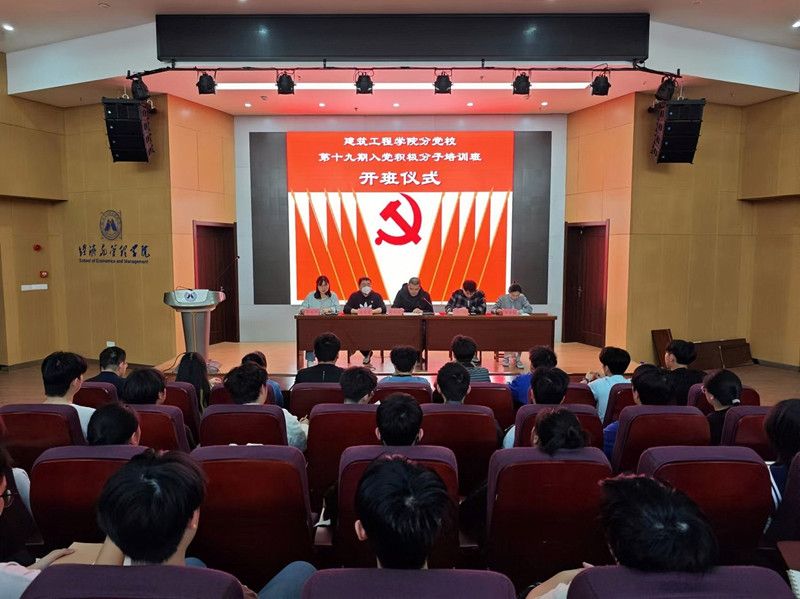 为深入学习贯彻习近平新时代中国特色社会主义思想和党的二十大精神,进一步加强入党积极分子培养教育,筑牢理想信念根基,4月9日下午,建筑工程学院第十九期入党积极分子培训班开班仪式于C座7楼报告厅举行,学院党委副书记张礼波,各专业学生党支部书记、培训班全体学员参加开班仪式。仪式由培训班班主任程亚运主持。