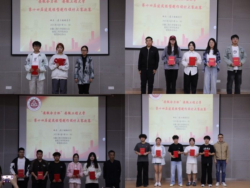 为深入贯彻落实乡村振兴战略,激发青年学子的创新精神与实践能力,4月9日在C座3楼报告厅成功举办了“安徽合力杯”第十四届建筑模型设计制作大赛决赛。本届大赛由校教育发展基金会、校团委主办,建筑工程学院团委承办,比赛邀请设计学院齐宛苑、吴劲松,建筑工程学院郭方棚、俞梦璇、伍蕾、王灿等老师作为评委,院党委副书记张礼波、团委书记、辅导员出席决赛现场。