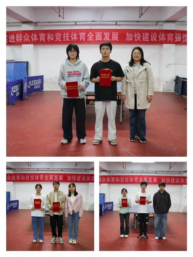 经过多轮鏖战,冠军归属最终揭晓,给排水241杨浩获得男单冠军,土木252徐子涵获得女单冠军。颁奖仪式上,吴敏,程亚运为获奖选手颁发证书与奖品。吴敏在致辞中强调,赛事的意义远超胜负,希望同学们将赛场上永不言弃、勇于突破的精神,融入到未来的学习与人生征程中,让体育之魂照亮青春梦想。