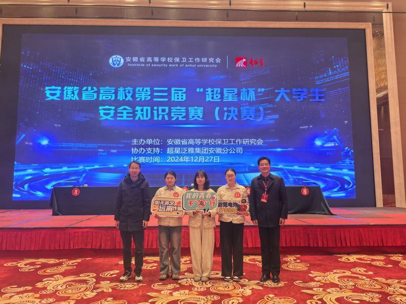 12月27日,安徽省高校第三届“超星杯”大学生安全知识竞赛(决赛)在安徽省蚌埠市举行,我院研究生组队代表学校参赛,成功斩获了一等奖。