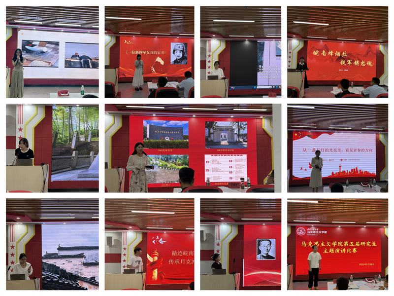 5月28下午,马克思主义学院在图书馆综合楼1410会议室举办“寻迹皖南红,声传青年志”研究生主题演讲比赛,全体研究生到场观摩。