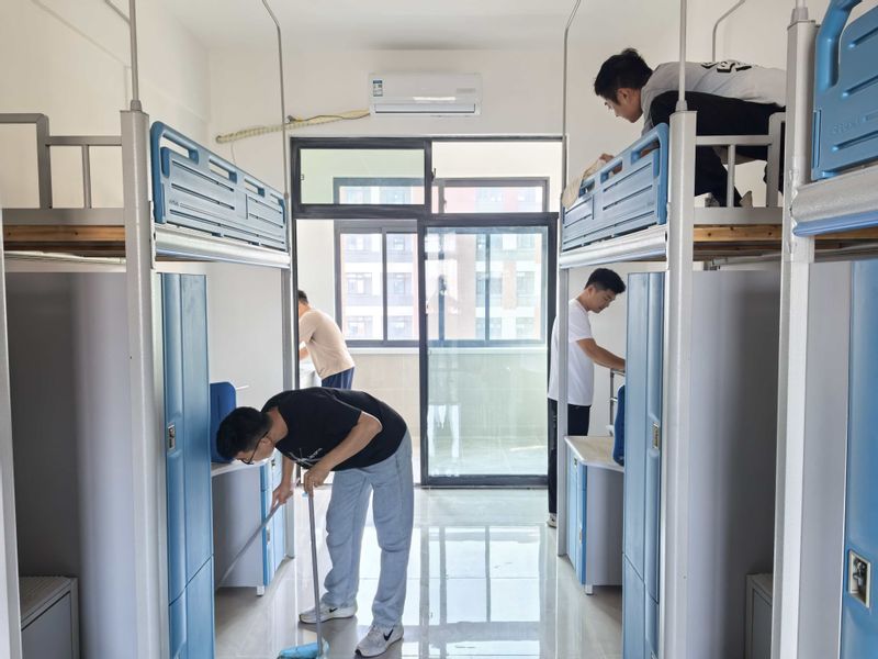 活动当天,学长学姐们自带清洁工具,分组深入新生宿舍,认真擦拭桌椅、清洁地面、通风消毒,不放过任何一个卫生死角。尽管天气炎热,但大家干劲十足,相互配合,在欢声笑语中完成了清扫工作。每一处细节都体现了他们对新同学的关怀与期待。