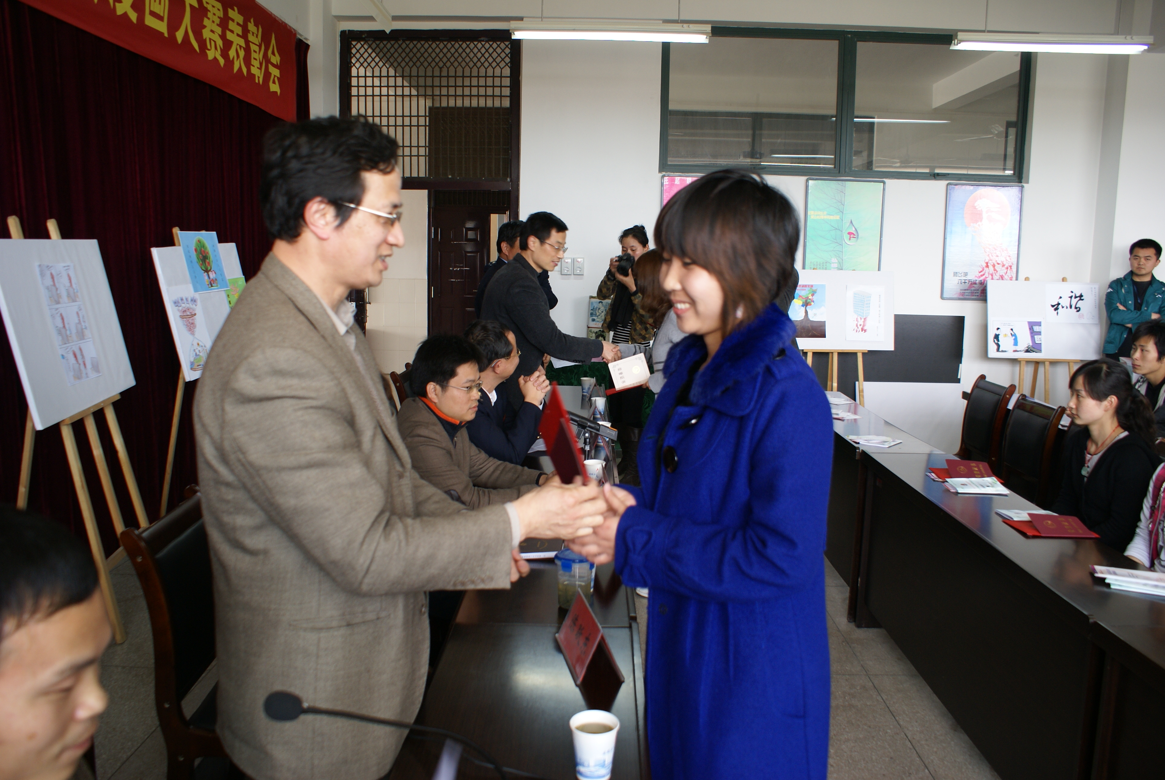 4月23日下午,芜湖市地税局鸠江分局与我校财务处、艺术设计系共同在艺术设计系会议室举行税法宣传漫画大赛表彰大会。省、市(分局)地税局领导,我校财务处、艺术设计系领导及参赛选手等出席了表彰大会,芜湖市电视台、广播电台、芜湖日报社等多家媒体进行了现场采访和报道。会议由财务处处长助理方永胜主持,艺术设计系党总支书记许晓菁、省地税局办公室主任赵俊峰、鸠江区地税分局局长李杰、财务处处长陈跃东等分别在会上作了讲话。